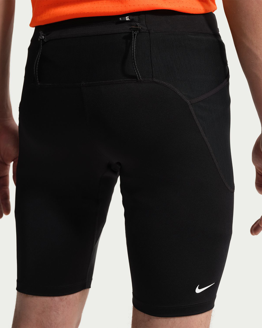 • Three mesh waistband pockets, a pocket on the brief liner and two drop-in pockets let you store trail essentials like energy gels and lip balm. The zip back pocket fits most phones. And the two elastic loops on the back of the waistband can hold trekking poles or a discarded layer.